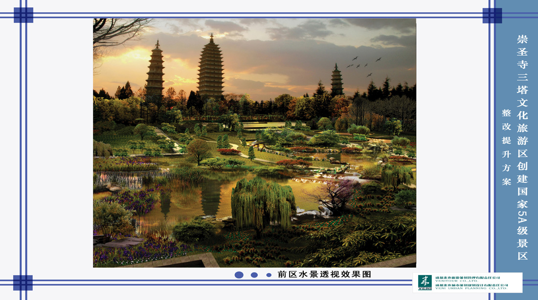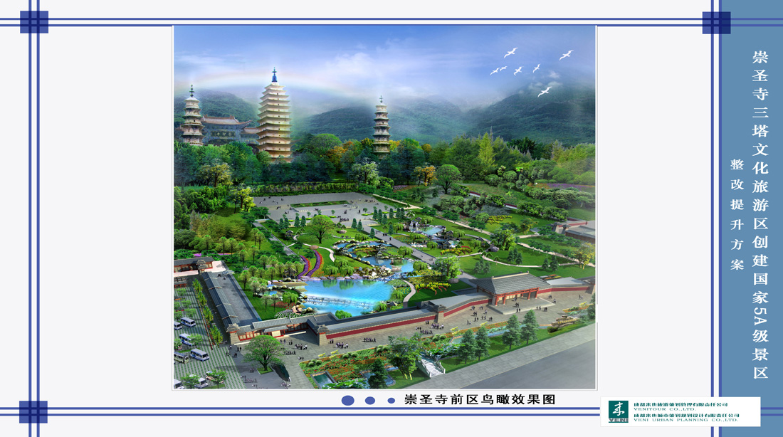 大理崇圣寺三塔文化旅游區(qū)位于大理古城北,占地1000余畝,是整個大理州的文化標(biāo)志和旅游形象代表,也是大理最重要的人文景觀之一,其資源等級高、富集度高,在亞洲地區(qū)擁有較高的知名度和美譽(yù)度,現(xiàn)為國家重點(diǎn)文物保護(hù)單位、國家4A級旅游景區(qū)。景區(qū)具備打造為國家5A級旅游區(qū)的條件,但也存在一些問題需要整治提升。因此,2007年大理旅游集團(tuán)有限責(zé)任公司委托我公司做景區(qū)提質(zhì)方案和旅游區(qū)的總體規(guī)劃。