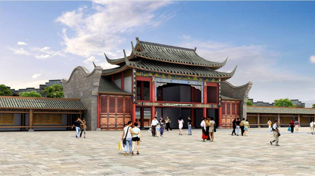 主入口服務(wù)區(qū):承擔(dān)游客組織和主題文化展示功能,包含集散、停車、咨詢、旅游必需品購(gòu)物、生活配套、導(dǎo)游服務(wù)等功能。