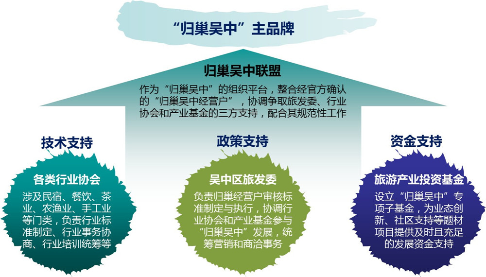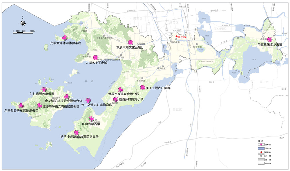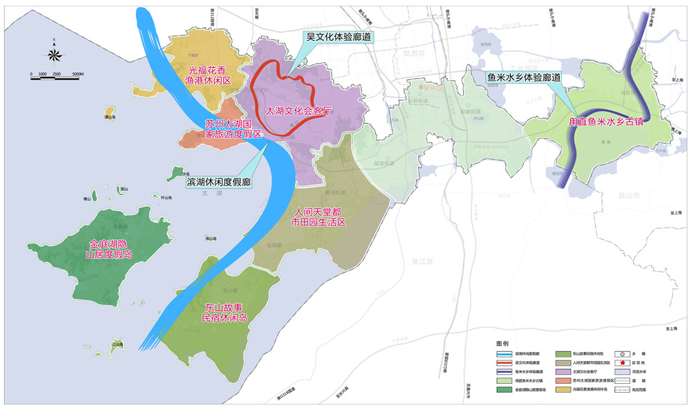 規(guī)劃通過“多點多極”的全域旅游休閑度假重構(gòu)吳中區(qū)旅游空間關(guān)系,通過“吳中旅游產(chǎn)業(yè)投資基金”整合發(fā)展管理運營旅游資產(chǎn),通過“NEST歸巢吳中”建立太湖鄉(xiāng)村的整合運作模式,通過“鄉(xiāng)村創(chuàng)業(yè)示范區(qū)”注入新的創(chuàng)新動力。最終形成“詩意太湖、古吳傳奇,魚米水鄉(xiāng)”三大主題片區(qū),金庭湖隱山居度假島、東山故事民宿休閑島、光?;ㄏ銤O港休閑區(qū)、姑蘇田園主題體驗區(qū)、古吳傳奇文化體驗區(qū)、甪直魚米水鄉(xiāng)體驗區(qū)、太湖新城城市休閑區(qū)、城市中心運河休閑區(qū)九大旅游組團。