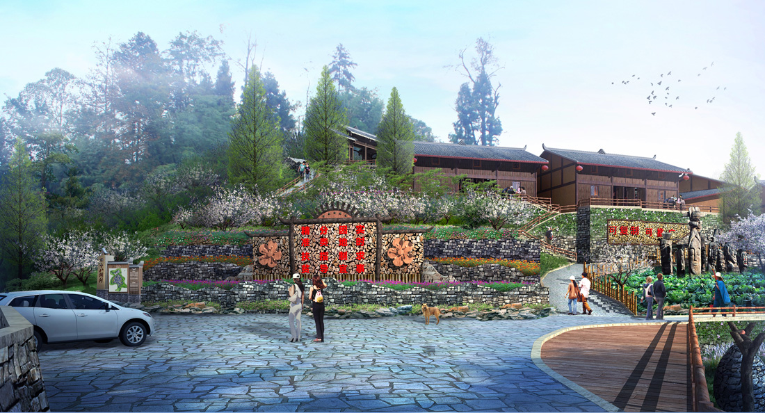 緊緊圍繞美麗鄉(xiāng)村建設(shè),按照“一寨一品,差異發(fā)展”的原則,對(duì)四個(gè)村寨環(huán)境進(jìn)行提升,通過景觀節(jié)點(diǎn)打造、道路兩側(cè)環(huán)境提升、民居風(fēng)貌改造、景觀小品設(shè)置等手段,打造各村寨的景觀特色,構(gòu)建一個(gè)山清水秀、環(huán)境優(yōu)美、氣候宜人、適宜人居的“美麗鄉(xiāng)村”集群。梨子寨廣泛種植梨樹,構(gòu)建“云霧梨花”品牌形象;竹子寨廣泛種植竹子,并在入口設(shè)置竹王苗韻景觀,在村寨內(nèi)部設(shè)置竹藝生態(tài)廣場(chǎng),在苗家樂的裝飾上大量采用竹編工藝品,構(gòu)建“山鄉(xiāng)翠竹”品牌形象;飛蟲寨內(nèi)部設(shè)置了蟲鳴鄉(xiāng)村濕地、蝴蝶濕地樂園、楓竹休閑田園等景觀節(jié)點(diǎn),構(gòu)建“田園唱響”品牌形象;當(dāng)戎寨廣泛種植桃樹,構(gòu)建“桃園山谷”品牌形象。