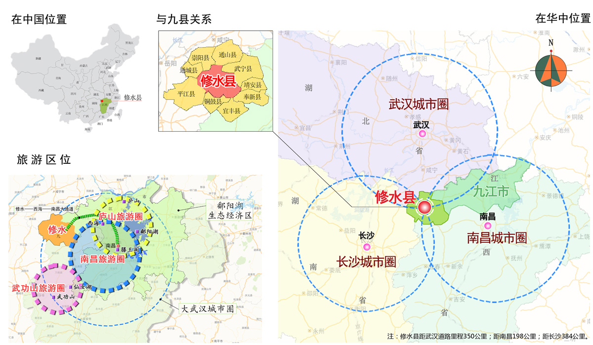 位于武漢、長沙、南昌三個省會城市形成的金三角的中心,周圍環(huán)繞有武寧縣、靖安縣、奉新縣、宜豐縣、銅鼓縣等九個縣,人口規(guī)模約2600萬,客源市場的潛力巨大。