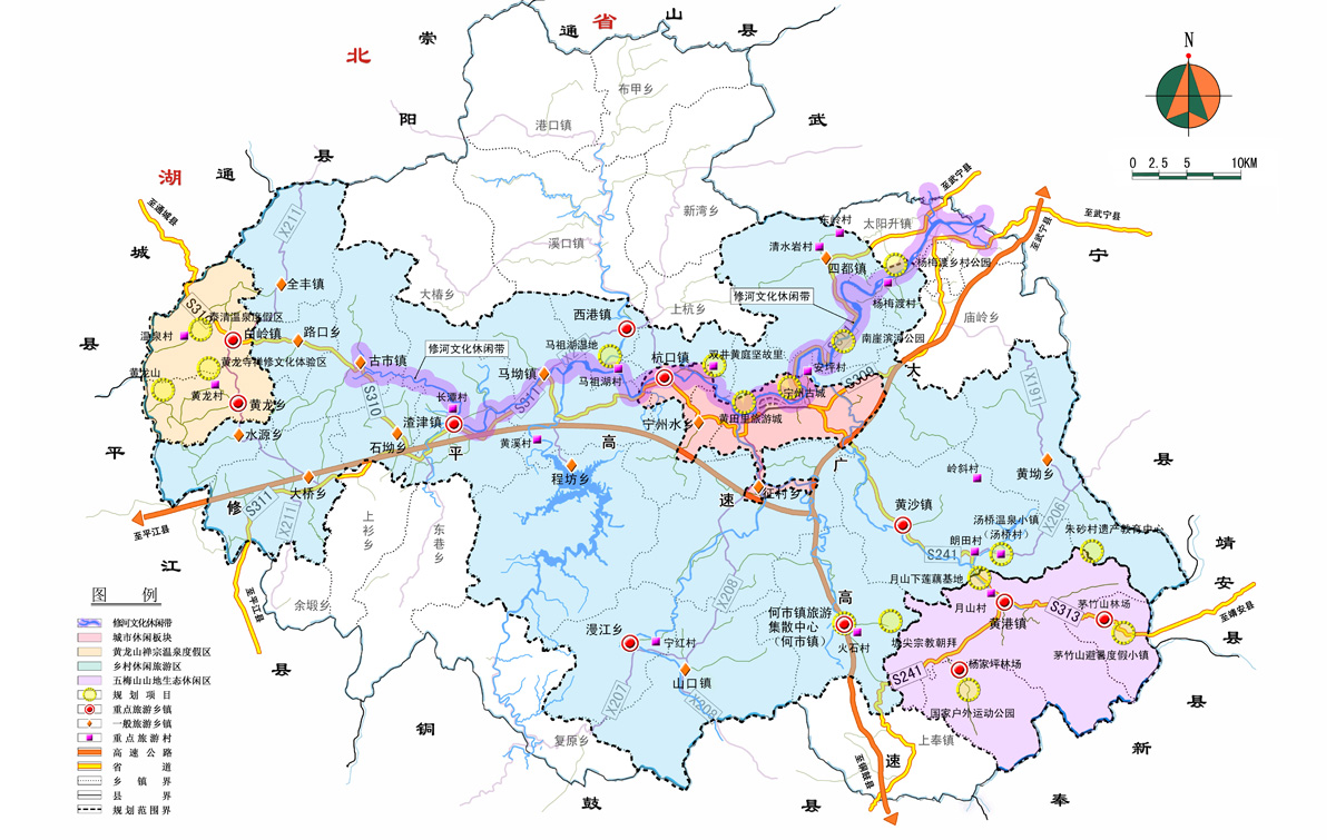 通過規(guī)劃,修水縣形成以修河為載體的休閑帶和以城區(qū)、黃龍山、五梅山、鄉(xiāng)村為核心的產(chǎn)業(yè)聚集區(qū)。