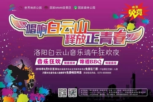 6月9日至6月30日,景區(qū)攜手鄭州音樂廣播FM94.4聯(lián)合舉辦三天兩夜大型音樂節(jié)活動,2016屆高考學子憑高考準考證免景區(qū)門票入園(景區(qū)交通不在免票之列),搖滾、啤酒、BBQ、篝火、帳篷嗨起來!