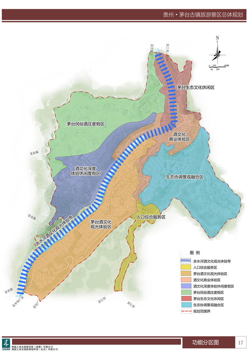在實施層面,“總體規(guī)劃”提出了文化復興、產(chǎn)業(yè)融合、空間疏解、國際化和標準化等四個實施策略, 提出“世界著名酒文化風情小鎮(zhèn)”的總體定位,和“國酒之鄉(xiāng),神秘茅臺”總體形象定位。其中,在產(chǎn)業(yè)融合規(guī)劃中重點指明了酒旅融合、文旅融合的發(fā)展途徑,為后續(xù)一系列規(guī)劃項目落地提供了支撐。