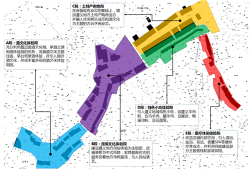 形成各具特色的主題街區(qū):發(fā)揮茅臺(tái)鎮(zhèn)本地優(yōu)勢,充分挖掘國酒文化、鹽運(yùn)文化和紅色文化,通過植入不同類型、主題突出的業(yè)態(tài),為茅臺(tái)鎮(zhèn)注入文化靈魂,以特色性商業(yè)形成差異性的競爭,從而塑造茅臺(tái)鎮(zhèn)的核心吸引力和品牌形象。