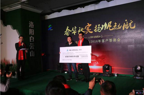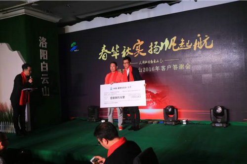 本次答謝會,白云山景區(qū)為2016年白云山發(fā)展做出突出貢獻(xiàn)的合作伙伴頒發(fā)了最具潛力獎、最佳伙伴獎、最佳合作獎、特別貢獻(xiàn)獎,并授予河南百事通國際旅行社有限公司“戰(zhàn)略合作伙伴”;會上為洛陽大自然旅行社有限責(zé)任公司等5家合作伙伴頒發(fā)了上百萬的獎金支票,讓來賓見證了白云山的誠信和實(shí)力;會上舉行了簽約插旗儀式,寓意2017年白云山與合作伙伴攜手并進(jìn),再攀高峰,再創(chuàng)輝煌;會上進(jìn)行了歡樂的抽獎儀式,白云山為3組30個幸運(yùn)伙伴送出了價值百萬的獎品。勁歌熱舞,魔術(shù)相聲等文藝節(jié)目穿插于活動中,處處洋溢著歡樂的氣氛。