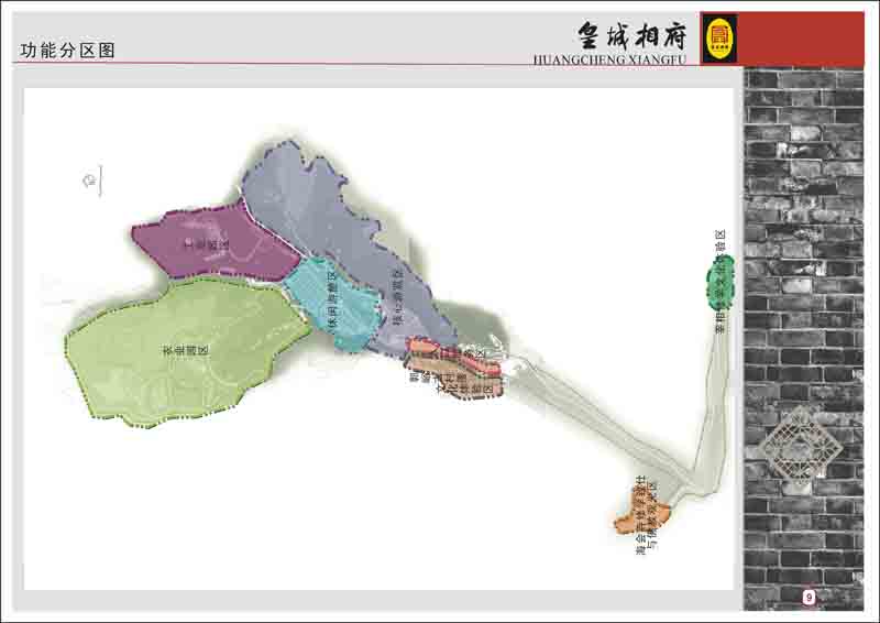 2. 空間布局與功能分區(qū)。根據(jù)資源特點(diǎn)及分布狀況,本次規(guī)劃將區(qū)內(nèi)旅游開發(fā)的總體布局確定為“一心四區(qū)”的空間結(jié)構(gòu),即以皇城相府為核心,工業(yè)園區(qū)、九女仙湖休閑區(qū)、以新農(nóng)村建設(shè)為核心的鄉(xiāng)村旅游區(qū)、以樊山、于山為主的生態(tài)休閑區(qū)。大皇城相府景區(qū)核心區(qū)主要?jiǎng)澐譃槠叽蟀鍓K:入口區(qū)、核心游覽區(qū)、休閑游憩區(qū)、新農(nóng)村建設(shè)示范區(qū)、景觀綠化帶、農(nóng)業(yè)園區(qū)、工業(yè)園區(qū)。