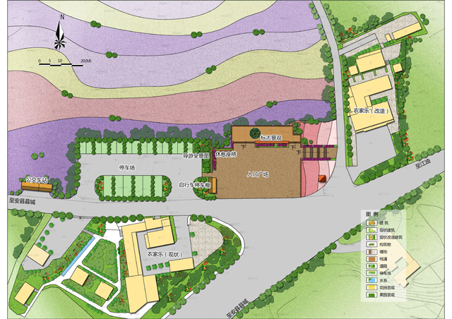 入口綜合服務(wù)區(qū):按照中國鄉(xiāng)村公園總體定位的思路和國家4A級景區(qū)的服務(wù)配套要求,將該區(qū)域作為景區(qū)的主入口區(qū),以周邊區(qū)域的花田景觀和鄉(xiāng)村環(huán)境為背景,分點(diǎn)式建設(shè)旅游配套設(shè)施,同時重新組織游覽線路,改造和提升環(huán)境品質(zhì),提升游客進(jìn)入花城果鄉(xiāng)的第一印象。