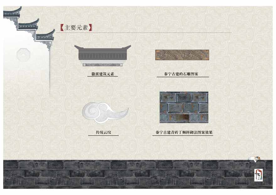 色彩:復(fù)古中的變化,以徽派建筑色彩特征作為搭配基礎(chǔ),配以明快現(xiàn)代氣息的色塊,象征古城煥發(fā)時代氣息。