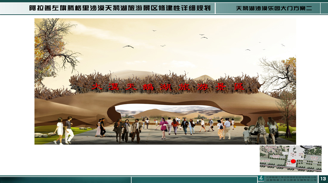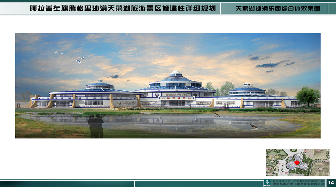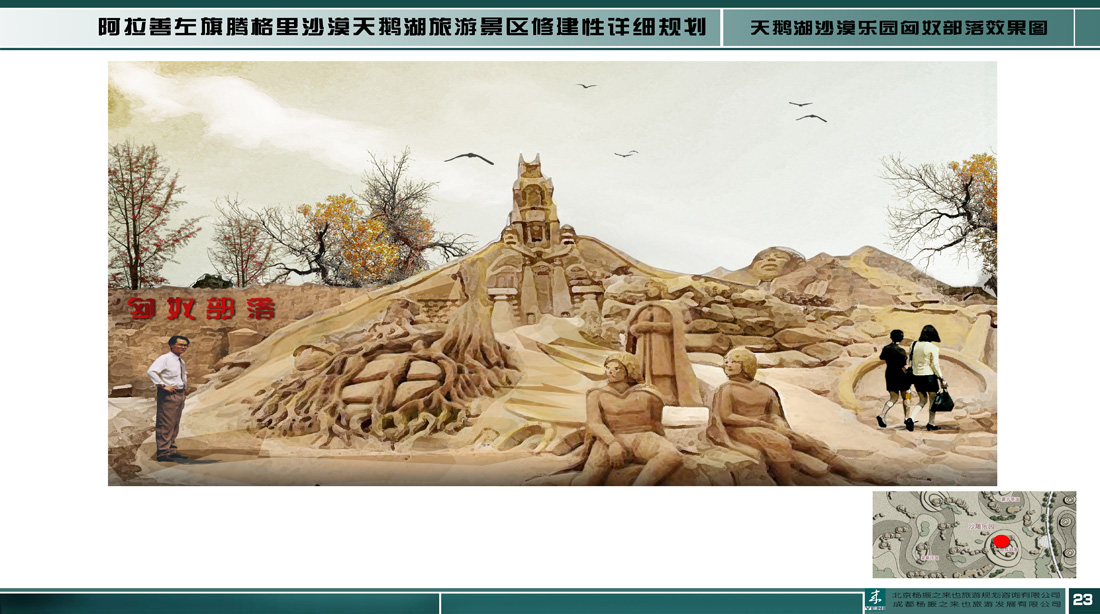 項(xiàng)目組通過詳細(xì)考察和市場調(diào)研,挖掘歷史悠久的蒙古和碩特文化,以蒙古帝國東征為主要線索,將項(xiàng)目區(qū)建設(shè)成為集沙漠探險(xiǎn)、運(yùn)動(dòng)娛樂、生態(tài)休閑為一體的旅游區(qū),并將規(guī)劃區(qū)打造成 “騰格里沙漠旅游的服務(wù)中心”、“獨(dú)特文化體驗(yàn)地”和“驚險(xiǎn)刺激的沙漠探險(xiǎn)地”。