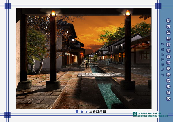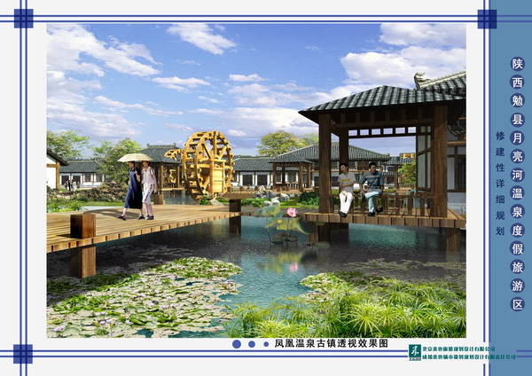 在水景設(shè)計(jì)中,利用溫泉崇拜的概念進(jìn)行水源景觀的包裝設(shè)計(jì),采用國外對溫泉崇拜的文化習(xí)慣,將其打造成為小鎮(zhèn)的景觀重心,使溫泉古鎮(zhèn)更具神韻。