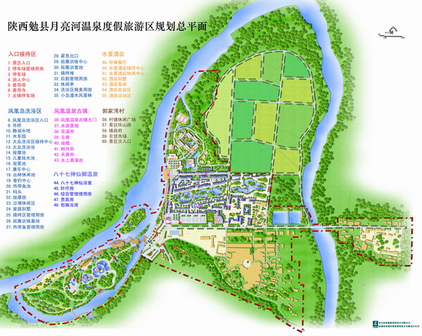 最終,以“秦嶺山麓的溫泉小鎮(zhèn)生活”為主題,完成了面向高端的鳳凰島溫泉洗浴區(qū)、鳳凰溫泉古鎮(zhèn)、國際會議中心和水景酒店以及面向低端的大眾溫泉洗浴區(qū)的設(shè)計(jì)工作,并創(chuàng)造性的引入“溫泉小鎮(zhèn)產(chǎn)業(yè)鏈”的理念,設(shè)計(jì)了花溪街和玉巷兩個商業(yè)文化游憩空間,完善和深化項(xiàng)目文化內(nèi)涵,并提升了項(xiàng)目的可操作性。