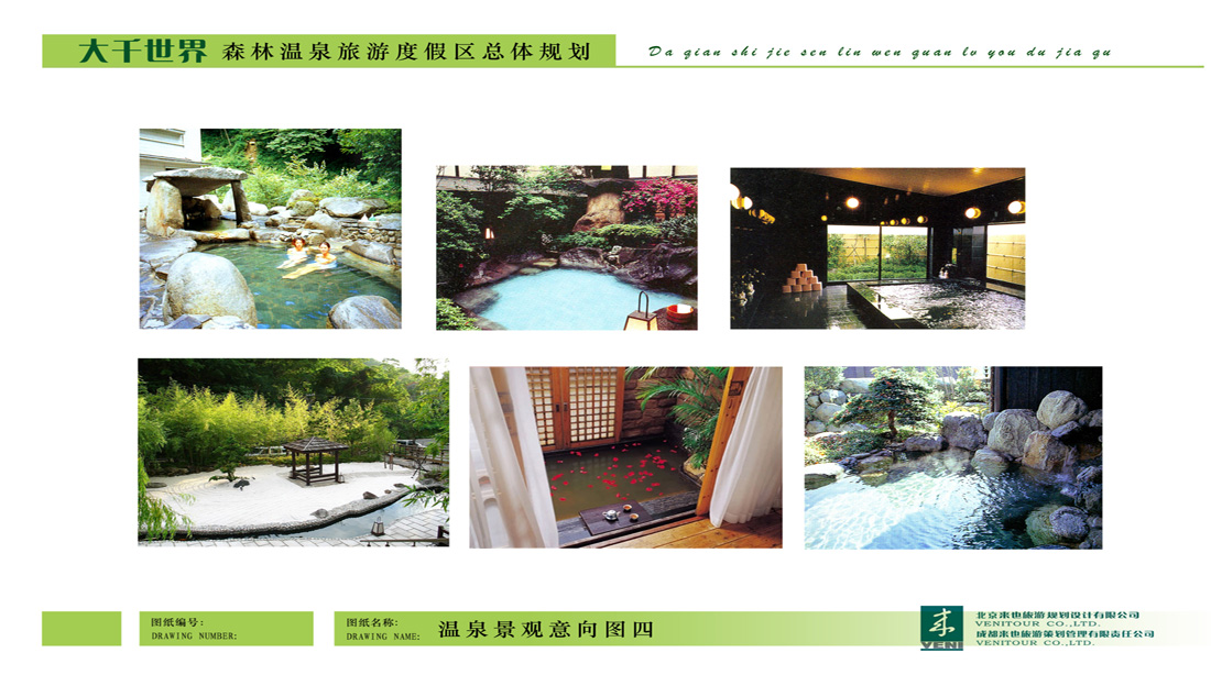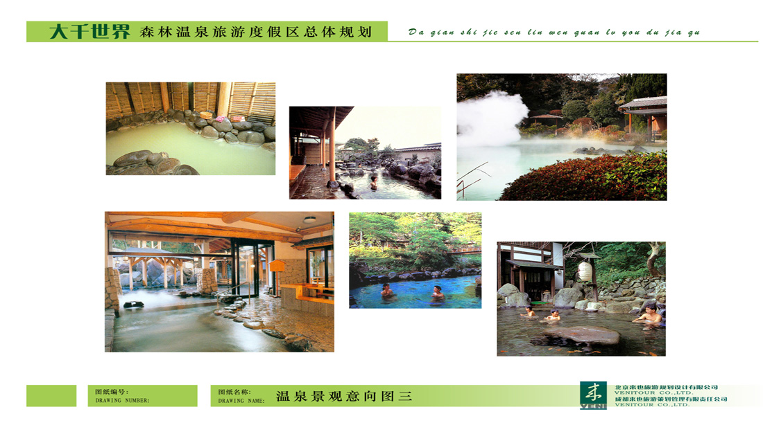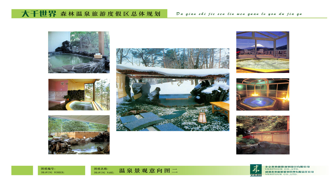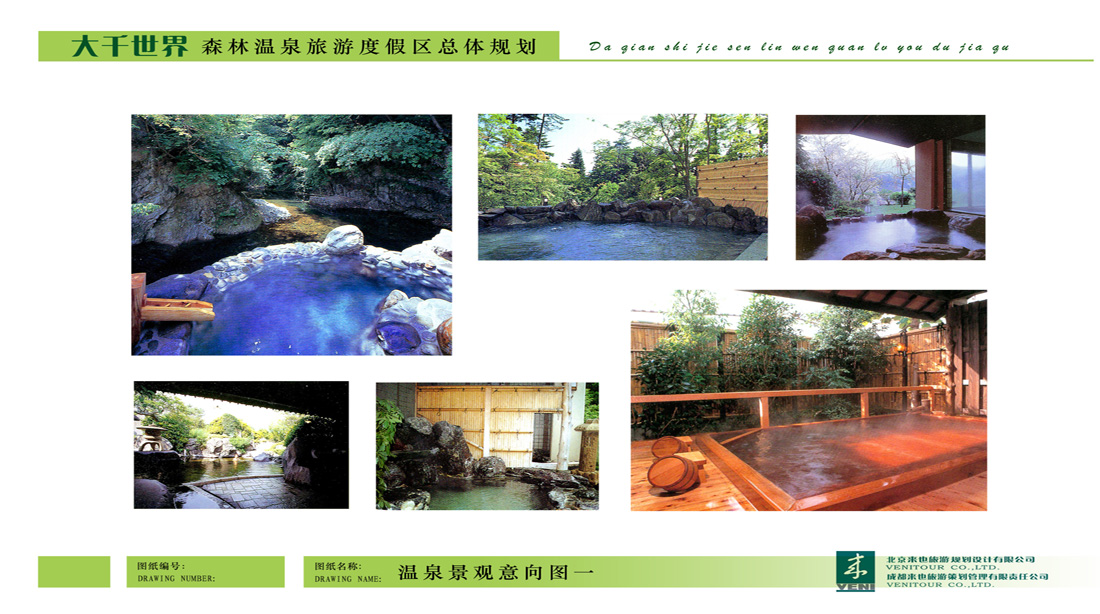 根據(jù)競爭者對比分析和甲方要求,明確了突出本地森林資源優(yōu)勢的命名——大千世界森林溫泉旅游度假區(qū),并提出了“構(gòu)建環(huán)境友好型生態(tài)綠色系統(tǒng),打造溫泉生態(tài)產(chǎn)業(yè)鏈”的規(guī)劃理念。