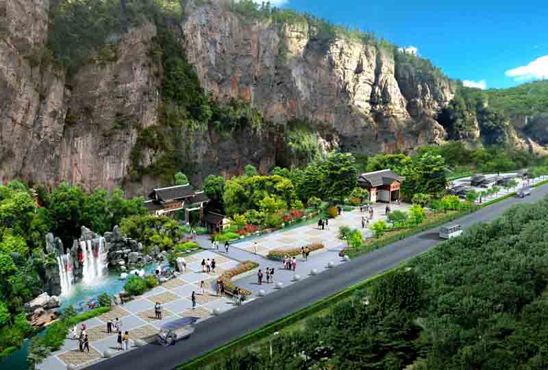 景區(qū)檢票口 | 將檢票管理房、景觀廊、檢票閘口組合為一體構(gòu)成整個入口大門,形成群體景觀,人流導向明確。大門高7.8米,寬20米 | |