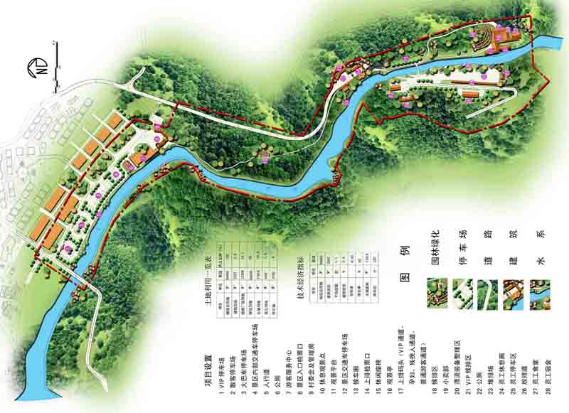上碼頭為上清溪景區(qū)游客的主要集散空間。2010年,景區(qū)了遭遇“6?18”、“7?7”特大洪澇災害,旅游交通、基礎(chǔ)設(shè)施等遭到嚴重破壞,河道和植被景觀發(fā)生很大改變,景區(qū)的經(jīng)營被迫中止,災前基礎(chǔ)設(shè)施和接待能力已經(jīng)無法滿足高峰期的游客需求。2010年11月,我公司接受了規(guī)劃整治任務,一是在原址對上清溪碼頭進行恢復和重建,以保證景區(qū)的重新開放;二是從景區(qū)的長遠發(fā)展考慮,對上碼頭旅游服務區(qū)進行空間規(guī)劃和重新布局,按照國家5A級景區(qū)的標準進行規(guī)劃和提升,規(guī)劃面積為94660平方米。