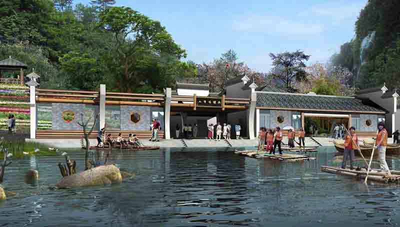 規(guī)劃組通過現(xiàn)場調(diào)查和訪談,該項目主要功能為:(1)集散功能。近期主要為游客提供集散、停車和等候的空間。中遠期做好發(fā)展內(nèi)部公交體系的集散區(qū)域。(2)服務功能。主要考慮滿足游客排隊購票、問詢、休息等候、導游服務等功能,以及游客開展漂流活動需要的租賃、寄存、安保等相關(guān)服務。(3)管理功能。主要考慮游客上排處、放排處及排的維護,承擔漂流竹排的調(diào)度和控制上排區(qū)游客數(shù)量的功能。同時還包括員工的食堂、宿舍和休息場所。