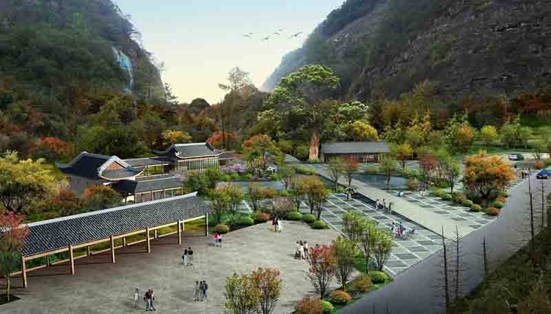 該規(guī)劃項目性質(zhì)為修建性詳細規(guī)劃,重點解決項目落地問題。在規(guī)劃中,我們著重從該區(qū)的功能定位入手,規(guī)劃了入口處、游憩區(qū)、上碼頭區(qū)和放排區(qū)四大區(qū)域,在項目設(shè)計中,我們選擇了與周邊環(huán)境相協(xié)調(diào)的的園林景觀、建筑要素為載體,構(gòu)建了重點建設(shè)項目。在規(guī)劃設(shè)計中,我們主要做到以下幾點:一是服務設(shè)施的功能性。功能性設(shè)施的建設(shè)符合景區(qū)實際需求即可,避免重復、多余建設(shè);二是材質(zhì)的本土化。在設(shè)計中,材質(zhì)本土化是所有景觀設(shè)計的首要原則;三是文化的符號化。我們的做法是把文化符號融入景觀設(shè)計中。