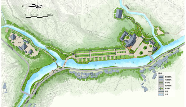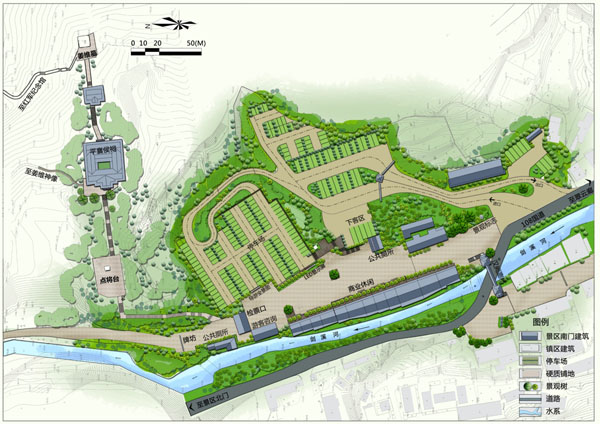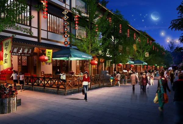 1、空間梳理。以人性化為原則,重新梳理古鎮(zhèn)街道空間,合理營造街道旅游景觀,避免遮擋街道兩側商鋪采光;合理布局出入口,營造多個景觀節(jié)點。