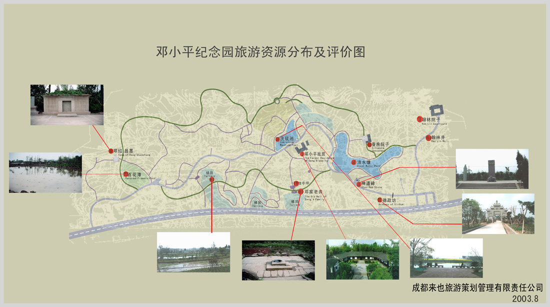 鄧小平紀念園位于四川省廣安市城區(qū)北部7公里處的協(xié)興鎮(zhèn)牌坊村。鄧小平紀念園是鄧小平故居保護區(qū)的核心區(qū)域,處于鄧小平故居保護區(qū)(面積29.1平方公里)的中心位置。1996年公布為省級文物保護單位,1998年2月江澤民題寫“鄧小平同志故居”匾額,2001年公布為全國重點文物保護單位,現(xiàn)為全國愛國主義教育基地。紀念園內(nèi)保留了鄧小平同志青少年時期生活的相關(guān)遺跡。主要有鄧家老院子、清水塘、德政坊、神道碑、翰林院子、鄧紹昌墓等。2003年受當?shù)卣奈?,我公司編制了本?guī)劃方案,此次規(guī)劃范圍以鄧小平故居為中心核心區(qū)域,規(guī)劃面積800畝。