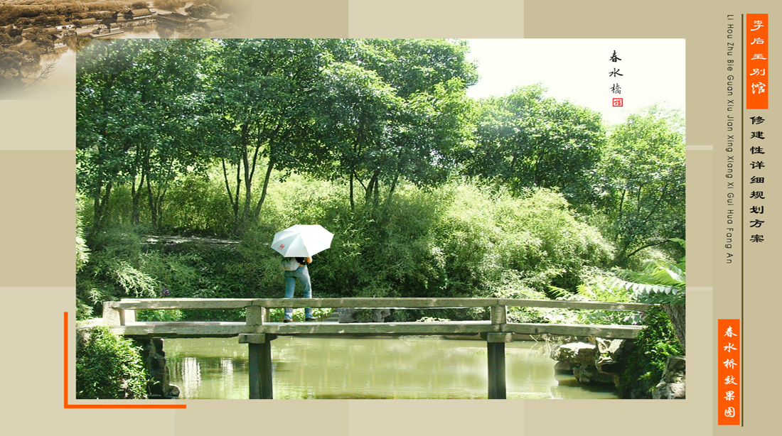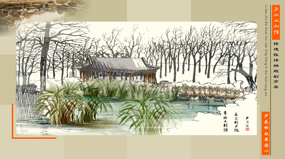 本項(xiàng)目的選址正是“南唐后主”、“詞中之帝”李煜當(dāng)年曾經(jīng)幽禁之地――孫李唐莊,擅長(zhǎng)詩(shī)文、音樂(lè)、書(shū)畫(huà)的一代帝王李煜曾創(chuàng)作了許多優(yōu)秀的文學(xué)藝術(shù)作品。為了充分挖掘和利用這些文化資源,潤(rùn)達(dá)置業(yè)公司決定修建以李煜及其詞文化為主題的“李后主別館”,并委托我公司編制《李后主別館修建性詳細(xì)規(guī)劃》。