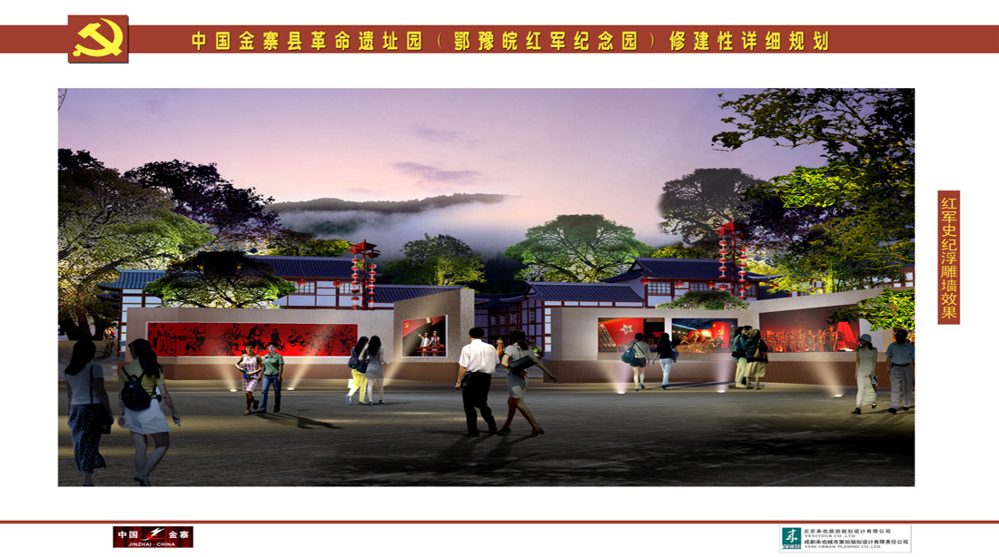 在修規(guī)中,規(guī)劃充分利用園區(qū)用地內(nèi)的地勢地貌,合理布局,對重要革命遺址復(fù)制,再現(xiàn)鄂豫皖紅軍隊伍的建設(shè)成長重要場景,在麻埠、金家寨兩條古街打造出昔日古鎮(zhèn)經(jīng)濟(jì)文化景象。