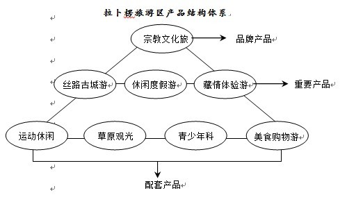 拉卜楞旅游區(qū)的旅游產(chǎn)品結構體系如下圖所示,由品牌產(chǎn)品、重要產(chǎn)品和配套產(chǎn)品構成一個特色鮮明、結構完整的體系結構。