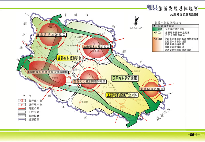 郫縣旅游產(chǎn)業(yè)的空間結(jié)構(gòu)為一廊、兩區(qū)、五組團。