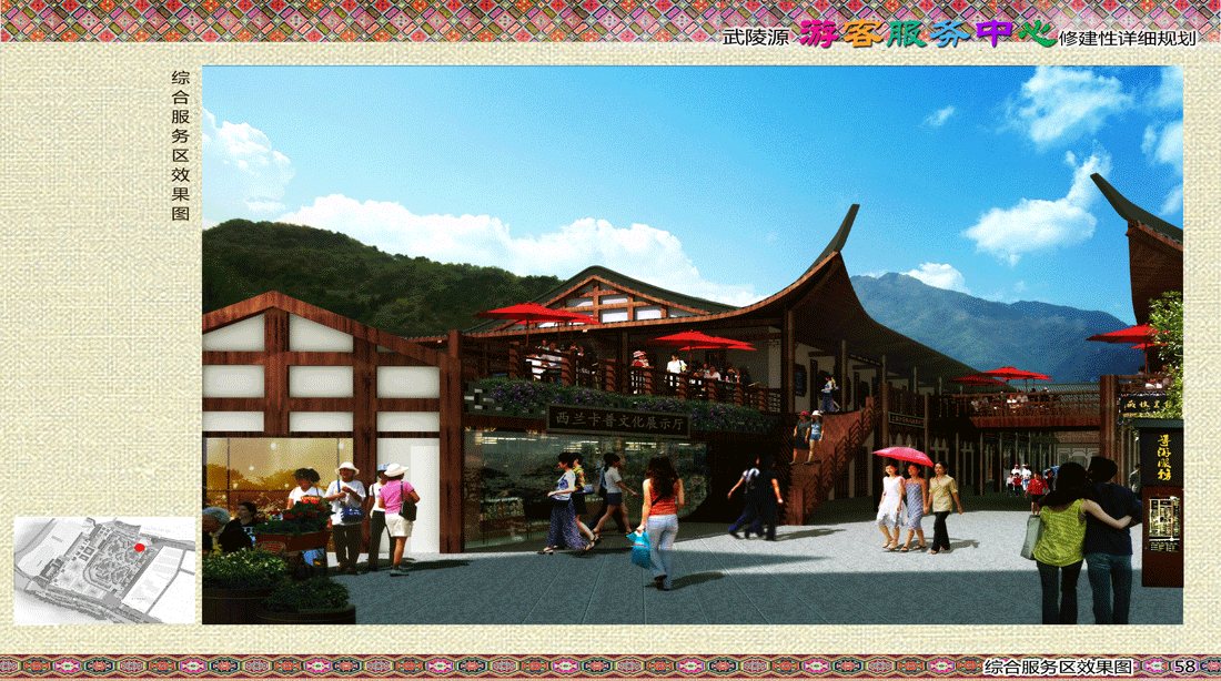 規(guī)劃區(qū)以資源特色為依托,以土家族文化為主題,將規(guī)劃區(qū)建設(shè)成為游客服務(wù)中心、張家界地貌博物館、公共活動廣場和文化展示區(qū)四大功能板塊。