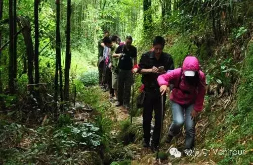 曲折山道被定性成為“公路”??疾鞎r(shí),很多時(shí)候踏腳之處卻沒有路!以鐮刀開路,穿越密不透風(fēng)的雜木林、箭竹林和灌木叢,稍不留神,就要被雜草樹根絆倒或者墜入深溝;為了搶時(shí)間,考察團(tuán)也只有在這樣的路況上不顧安危搶跑,稍微跟慢幾步,便已不見前人蹤影,只有穿林的腳步聲與青翠的鳥鳴聲。