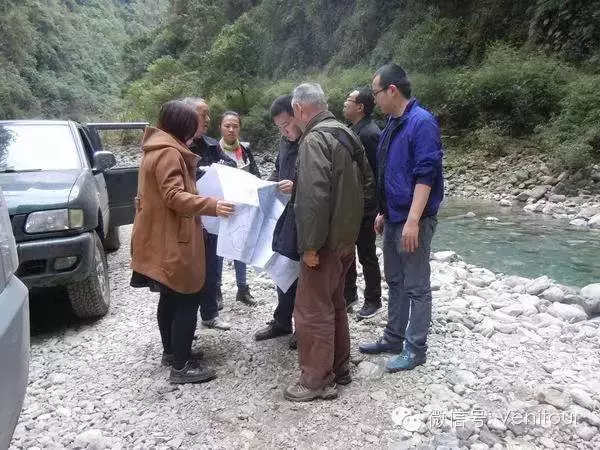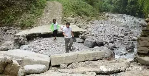 前段時(shí)間景區(qū)剛下過一場(chǎng)暴雨,導(dǎo)致很多路基被沖毀,皮卡車在山路上“跳躍”前行,大家笑稱“這是蹦蹦車做松骨運(yùn)動(dòng)”。車行半程的時(shí)候,必經(jīng)之路的一座小橋被沖毀,車輛無法通過,當(dāng)?shù)叵驅(qū)裾f原路返回。為了對(duì)景區(qū)進(jìn)行深入了解,規(guī)劃團(tuán)隊(duì)決徒步前進(jìn)繼續(xù)考察。